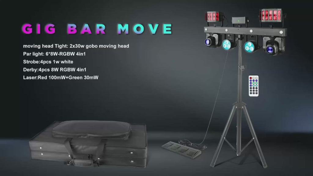 IMRELAX Gig Bar Move Kit with Moving Heads Derbies Wash Par Lights Laser Strobe Lights Stand Sound Activated DMX Wireless Control DJ's Setup